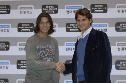 <사진> 2006년 로저 페더러와 서울에서 현대카드 슈퍼매치를 가진 라파엘 나달. 채널에이 자료