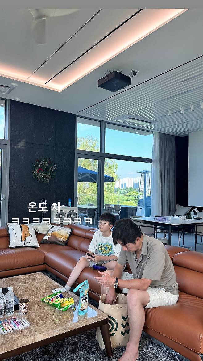 반면 "온도 차"라면서 TV를 시청하거나 쇼핑백 속 물건을 정리하는 등 각자 할일 중인 아빠와 아들 시욱 군의 모습도 공개돼 웃음을 안긴다.