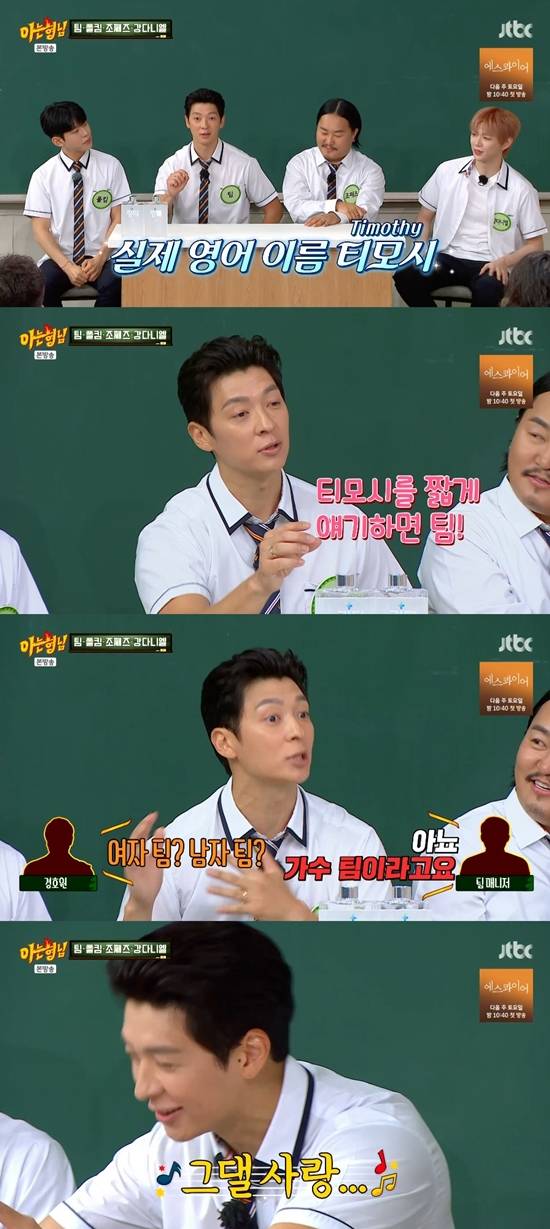 김희철이 팀에게 "이름이 왜 팀이냐. 이름 검색하기도 힘들다"라고 질문했다. 팀은 "나는 영어 이름이 티모시다. 티모시를 짧게 이야기하면 팀이다. 이름 때문에 많이 힘들었다. 팀 검색하면 배구팀, 농구팀, 야구팀 등이 나온다"라고 설명했다.