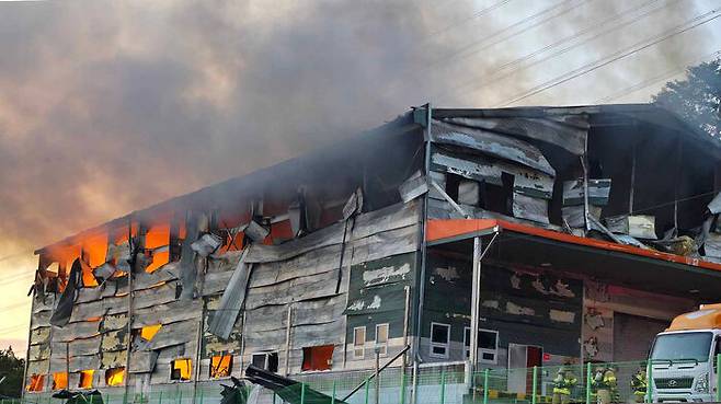 세종 자전거 물류 창고서 불…자재 보관 1개동 전소