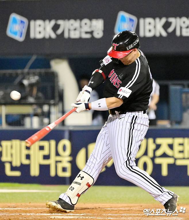 LG는 8회초 김현수의 천금 같은 적시타로 한 점을 달아났다. 1사 후 볼넷을 얻어 나간 신민재가 문성주의 투수 땅볼에 2루까지 진루했다. 후속타자 김현수가 우측 파울라인 선상 2루타를 때려내면서 도망가는 타점을 올렸다.