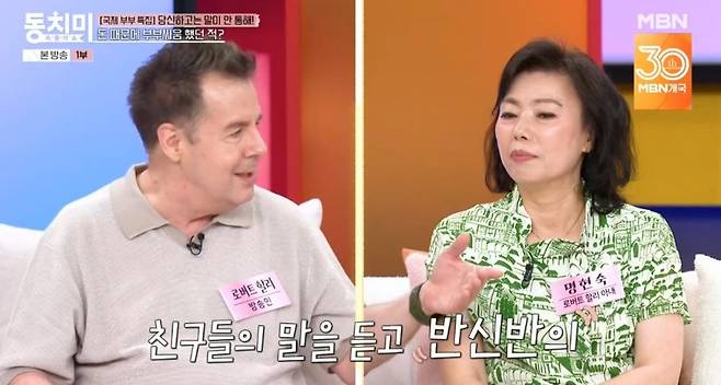 26일 MBN '속풀이쇼 동치미'에선 국제부부 특집으로 로버트 할리 명현숙 부부가 게스트로 출연해 결혼 생활을 소개했다.
