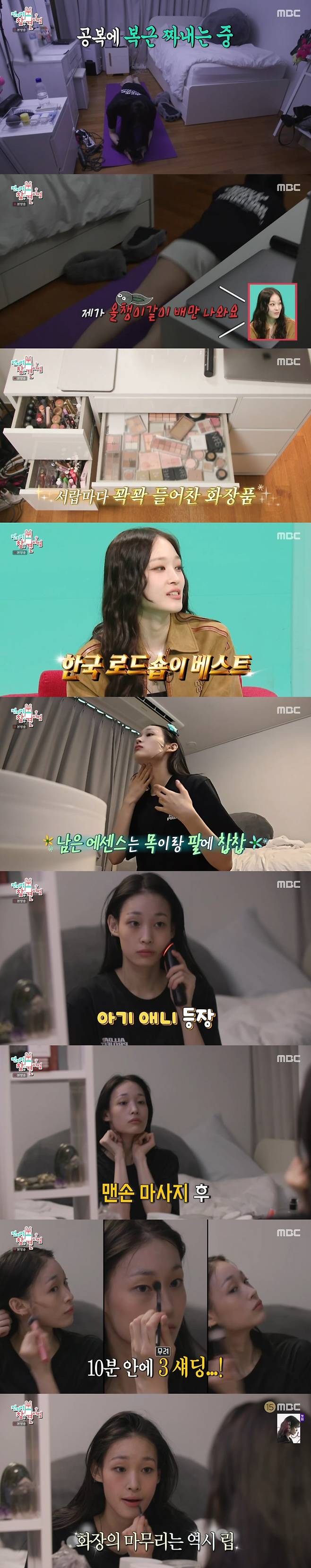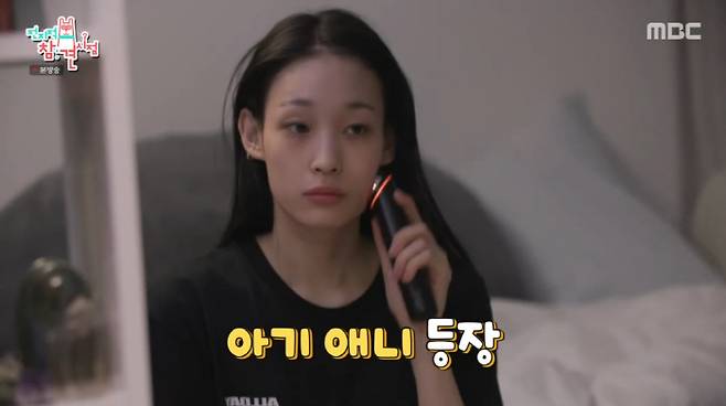 운동 후 씻고 나온 애니는 마스크팩을 붙인 채로 방 청소를 시작했다. 이어 다 흡수된 팩을 떼고 나니 무대 위 센 애니가 아기 애니로 변신해 눈길을 끌었다.