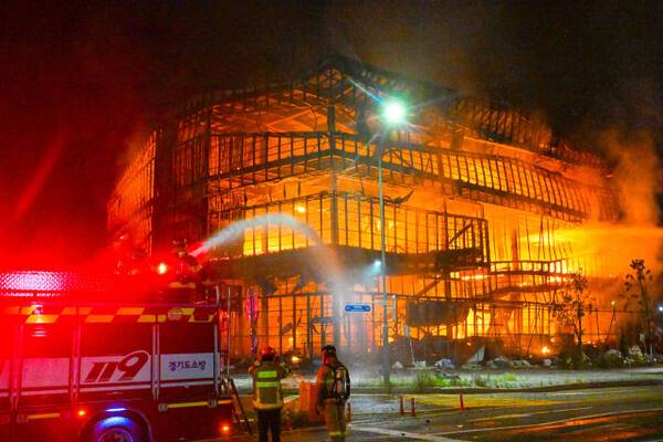 시뻘건 수원 권선구 모델하우스 화재 현장 [포토뉴스]