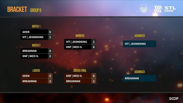 B조에서는 VIT 전띵 전상현 선수(에디)가 1위, BREADMAN 이찬혁(리로이, 클라우디오) 선수가 2위로 올라왔다.