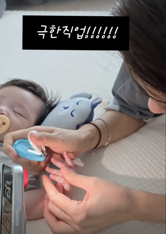영상 속에는 깊이 잠든 딸 해이의 손톱을 조심스럽게 다듬는 손담비의 손길이 담겼다.