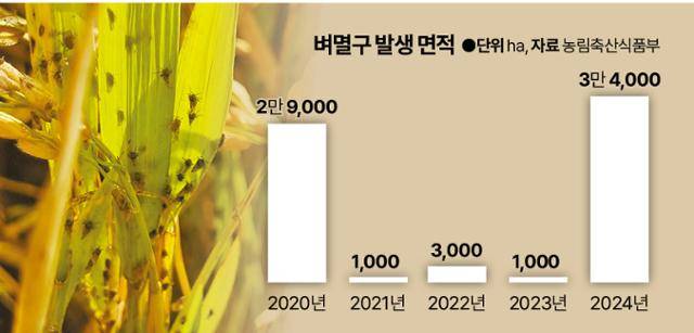 지난해 우리나라의 약 3만 4,000㏊ 논에 벼멸구가 대발생해 2,300억 원이 넘는 피해가 발생했다. 벼멸구는 매년 6월부터 중국과 필리핀 등 동남아 지역에서 기류를 타고 날아오는 해충인데, 규칙적 방제로 피해가 크지 않았다. 그러나 작년에는 발생 면적이 30배나 증가했다. 가을까지 이어진 이례적 무더위로 증식 속도가 빨라지고 개체수가 급증했기 때문이다. 올해도 전년 대비 유입 시점이 빨라져 농촌진흥청이 조기 방제 등 대책 마련에 분주한 상황이다.