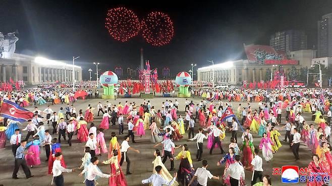 ▲ 북한 조국해방전쟁승리 72주년(7월 27일)을 경축하는 평양시 청년학생들의 야회 및 축포발사가 지난 26일 저녁 김일성광장에서 진행됐다.