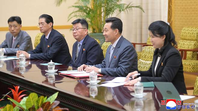 ▲ 북한 박인철 최고인민회의 의장이 지난 2일 만수대의사당에서 카즈베크 타이사예프 러시아 국가회의 러조친선의원단 단장을 만나 담화를 나눴다.