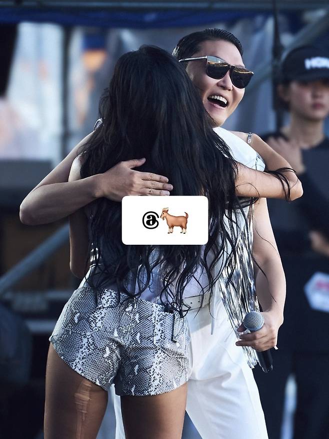 또한 싸이와 무대 위에서 반갑게 포옹하며 인사를 나누는 장면도 공개했다.