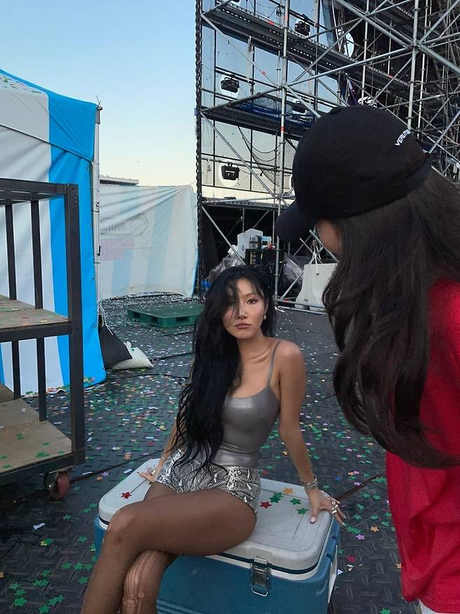 화사는 지난 27일 “Summer Swag 속초”라는 글과 함께 여러 장의 사진을 SNS에 공개했다. 공개된 사진 속 화사는 지난 26일 강원도 속초시 종합경기장에서 열린 ‘싸이흠뻑쇼 SUMMERSWAG2025-속초’ 무대에 올라 관객들과 함께 신나는 무대를 펼쳤다.