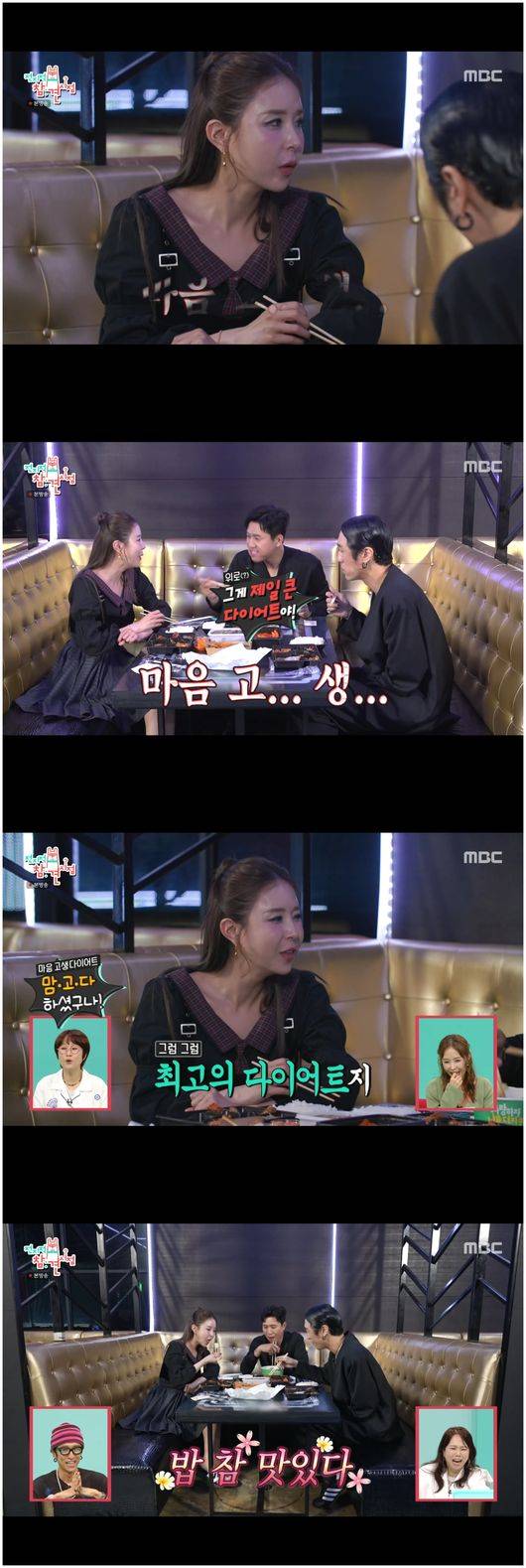 이를 본 신지는 “미안한데 나는 관리를 하지 않았다. 식단 조절을 안 했다”라며 “마음 고생해서 살이 빠져서”라고 말해 모두를 놀라게 했다. 이에 대해 김종민은 “그래, 그게 최고의 다이어트야!”라며 해맑게 외쳤고, 빽가는 “그래, 많이 먹어라”라며 묵묵히 분위기를 수습해 역시 코요태의 중간 노릇을 하고 있다는 것을 밝혔다./osen_jin0310@osen.co.kr
