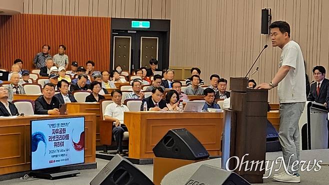 | ▲ 한국사 강사 출신 전한길(본명 전유관)씨가 지난 14일 오후 서울 여의도 국회 박물관에서 윤상현 국민의힘 의원 주최로 열린 '무엇을 할 것인가?, 자유공화 리셋코리아를 위하여' 토론회에 참석해 발언하고 있다. |