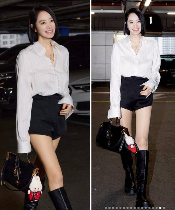 화이트 셔츠에 핫팬츠, 블랙 롱부츠를 매치한 김혜수는 170cm의 늘씬한 키와 완벽한 비율로 눈길을 끌었고, 시크하면서도 세련된 스타일링으로 또 한 번 '패션 퀸' 면모를 입증했다.