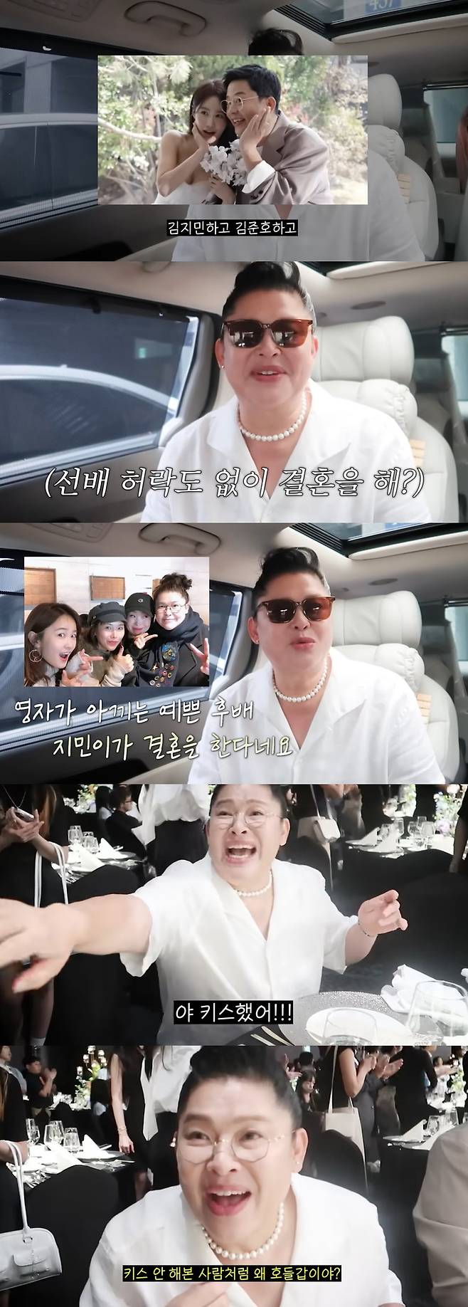 이영자가 코미디언 후배 김준호 김지민의 결혼식에 다녀왔다.