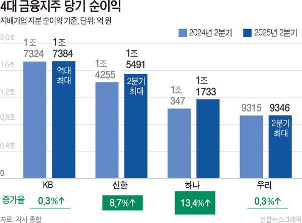 4대 금융지주 상반기 순익 10조 첫 돌파