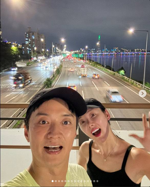 이어진 사진에서는 남편 인교진과 함께 한강변에서 야간 러닝을 즐기는 모습도 포착됐다. 모자에 운동복 차림의 두 사람은 땀에 젖은 채 해맑은 웃음을 지어 보이며, 여전히 달달한 부부 케미를 자랑했다.