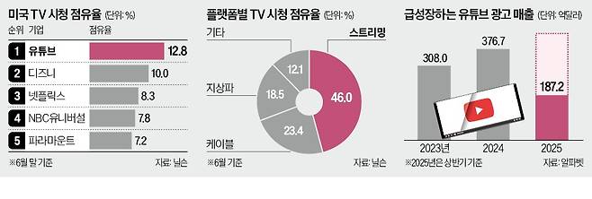 美 TV 1위 유튜브, '韓 리모컨' 장악 초읽기