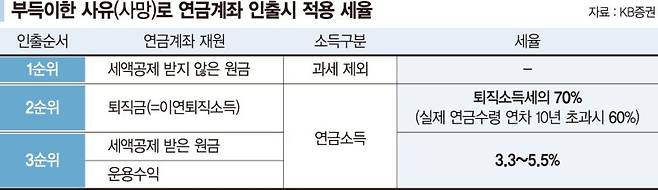 KB증권은 연금계좌를 상속할 때 배우자가 승계받는 것보다 해지하는 게 더 유리할 수 있다고 조언했다.