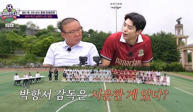 MC 김용만, 김성주는 "박항서 감독님 팀이 드디어 첫 승리를 했다"라고 알렸다. 김용만은 "이찬형 선수가 골을 넣지 않았냐. 근데 박항서 감독님이 섭섭해하신단 소문이 있다. 보통 첫 골은 감독님한테 달려오는데, 안 달려왔다"라고 밝혔다. 이에 이찬형은 "달려가려고 했는데, 팀원들이 붙잡아서 뿌리치지 못했다"라고 해명하며 다음엔 무조건 달려가겠다고 약속했다.