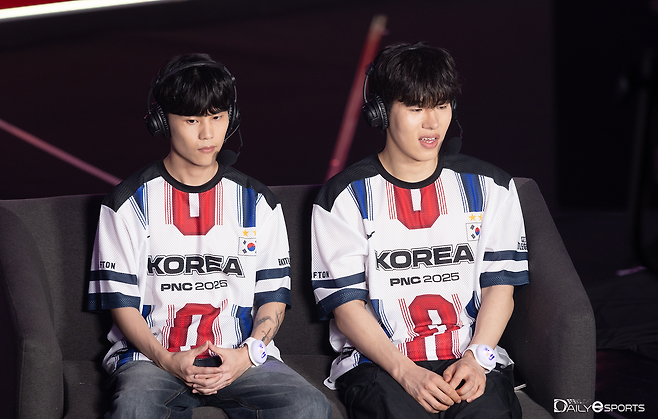 27일 오후 서울 송파구 방이동 올림픽공원 티켓링크 라이브 아레나에서 열린 펍지 네이션스 컵 최종전이 진행 중이다. 분석데스크서 활동 중인 '로키' 박정영과 '저스티스' 김동연.