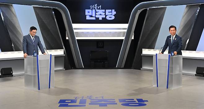 | ▲ 더불어민주당 박찬대, 정청래 당대표 후보가 27일 서울 여의도 KBS 신관 공개홀에서 열린 TV토론회에 참석해 시작을 기다리고 있다. |