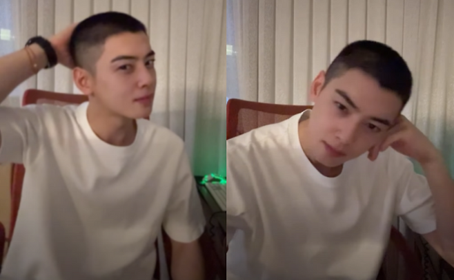 차은우는 27일 자신의 SNS에 머리를 짧게 밀고 팬들과 라이브로 소통했다.