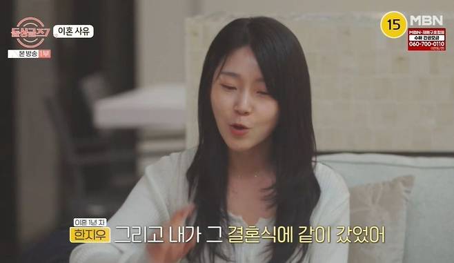 이혼 1년 차인 한지우는 "어린 나이에 너무 빨리 사랑에 빠져서 결혼했고, 그래서 나도 미성숙한 게 있었던 것 같다"라며 "상대가 갑자기 이별 통보를 했는데, 자신이 타인과 함께 살 수 없는 사람이란 걸 깨달았다고 하더라"라고 밝혔다.
