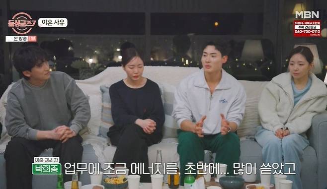 그런 가운데 '돌싱글즈7' 출연자들의 이혼 사유가 공개됐다. 먼저 이혼 3년 차인 박희종은 "사회 초년생 때 결혼 준비를 했는데, 초반에 업무에 에너지를 많이 쏟았다. 그로 인해 상대방이 좀 지쳐서 관계의 균열을 만들었다"라고 밝혔다.