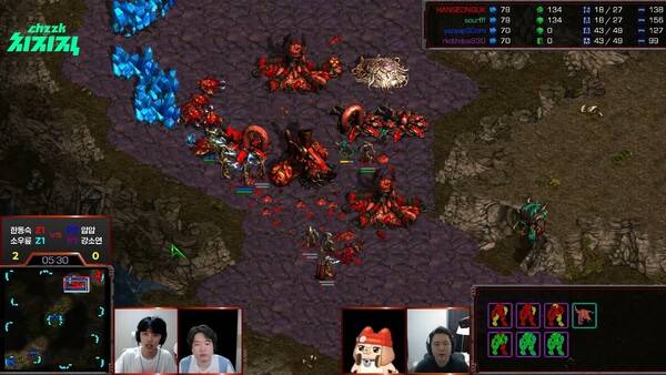 한동숙은 2해처리 러커로 이를 맞받아쳤다. 강소연의 미숙한 바이오닉 컨트롤과 상황 판단을 역으로 이용한 것이다. 한동숙은 초반 드론을 빠르게 확보하며 강소연의 진출 타이밍을 저글링으로 체크했다.
