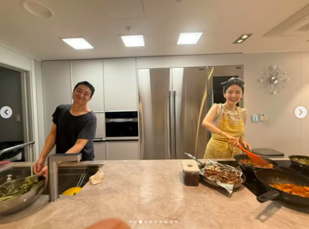 공개된 사진에는 장영란과 한창이 주방에 나란히 서서 카메라를 향해 환하게 웃고 있는 모습이 담겼다.