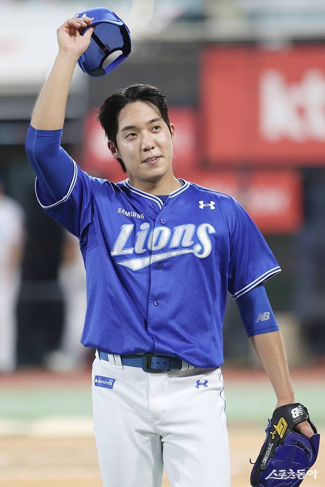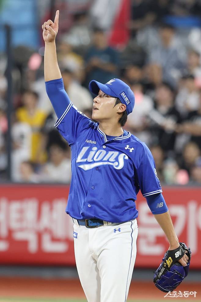 1회말 1사 1·2루, 2회말 2사 1·2루 위기를 넘긴 뒤부터 특유의 안정감이 살아났다. 3회말에는 강백호-안현민-장성우의 KT 중심타선을 3자범퇴로 요리하고 7연속시즌(2019~2025년) 100이닝(역대 30번째) 고지도 밟았다. 삼성 타선은 4회초 구자욱의 2루타와 상대 야수선택으로 만든 무사 1·3루서 전병우의 2루수 땅볼로 선취점을 올렸다.