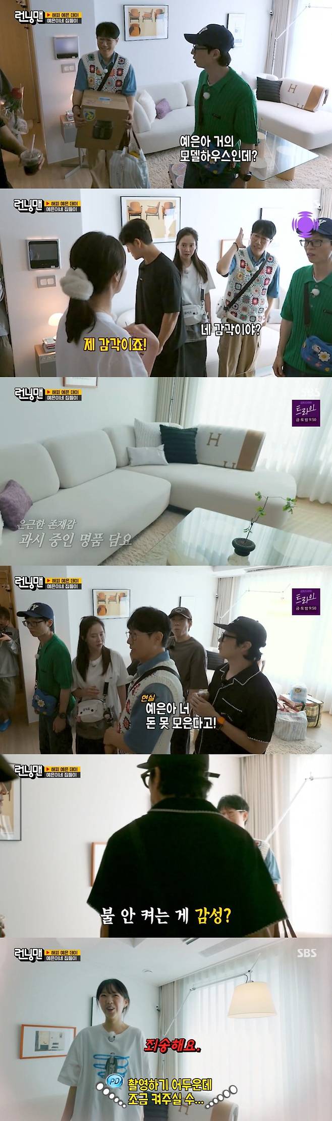 이에 지예은은 "제 감각"라고 답했고, 김종국은 "저 에르메스는 뭐냐"면서 소파에 걸려 존재감을 뽐내는 에르메스 담요를 언급했다.