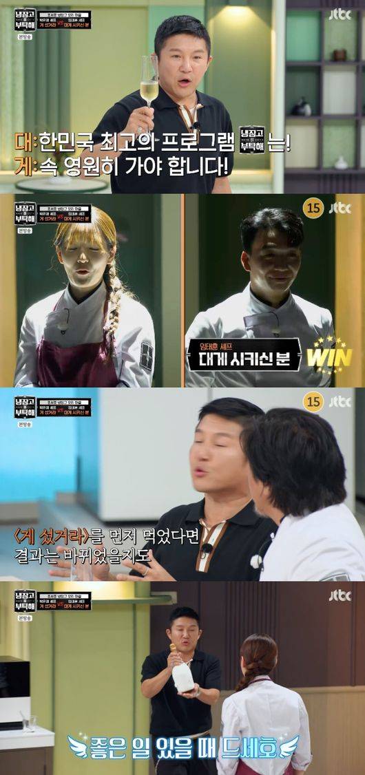한편, 조세호는 임태훈에게 별을 달아주기 전, 냉장고에서 두 번째 샴페인을 꺼내 눈길을 끌었다. 그는 “요리가 이루 말할 수 없다. 샴페인과 조화가 너무 좋아서 냉장고 안에 있던 또 하나의 샴페인은 박은영 셰프님에게 드리겠다. 굉장히 좋아하는 거다. 축하할 일 있을 때 앞으로 좋은 일 있을 때 드셔라”라고 선물해 훈훈함을 자아냈다.