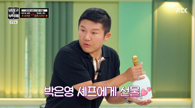 [OSEN=박하영 기자] ‘냉장고를 부탁해’ 조세호가 고급 샴페인 개봉은 물론, 박은영 셰프에게 통 큰 선물을 했다.
