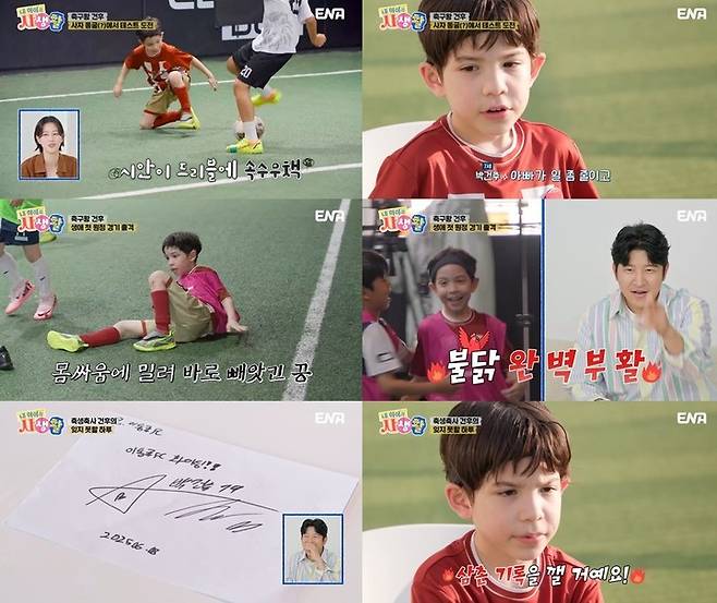(MHN 정에스더 기자) 전 축구선수 박주호의 아들 건후가 '내 아이의 사생활'에서 축구선수로서의 가능성을 시험했다.