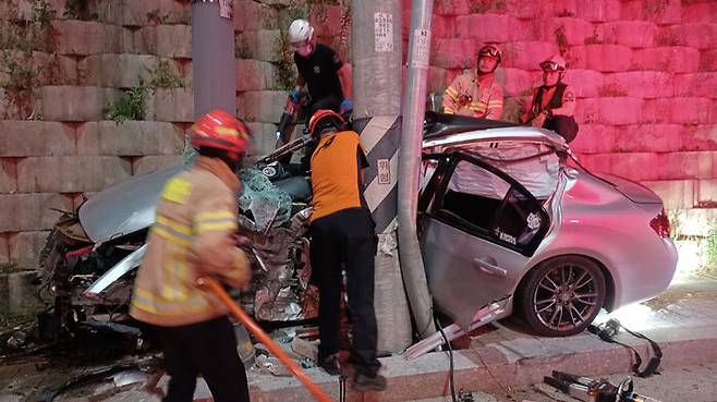 전봇대와 옹벽 사이로 돌진…평택서 20대 미군 운전자 숨져