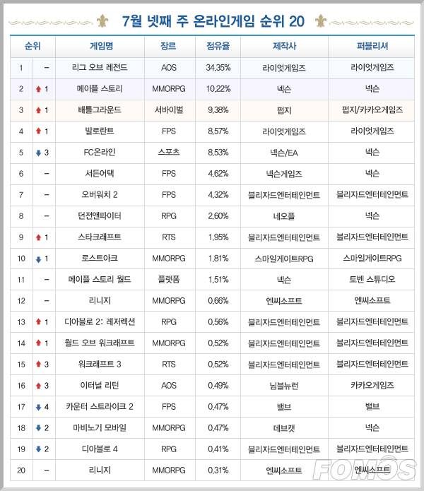 [차트-온라인]'리그 오브 레전드' 365주 연속 1위 수성