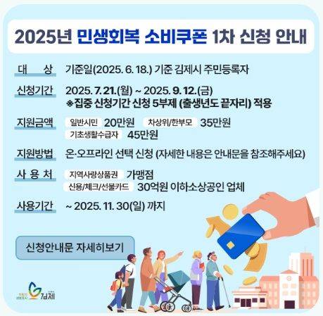 전북 김제시는 민생회복 소비쿠폰 지급률 제고와 시민 체감 복지 강화를 위해 '찾아가는 신청 서비스'를 운영한다고 28일 밝혔다.