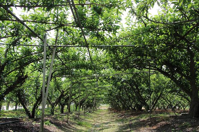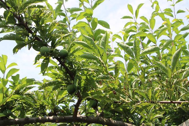 | ▲ 안석봉·이상희씨 부부의 과수원은 자두 흔적을 찾아보기 어려울 정도로 나무에 이파리만 무성했다. |