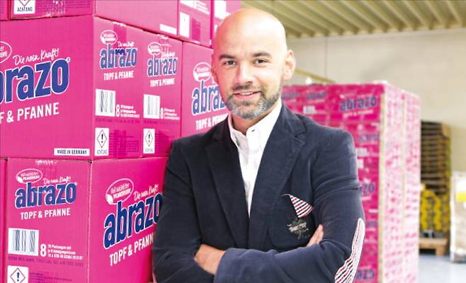 오스카바일은 독일에만 안주하지 않고 유럽과 중동 등으로 사업을 확대하고 있다. 일등공신은 아브라조다. 철 수세미 안에 식물성 세제가 내장돼 있어 세정제가 필요 없고, 세척과 동시에 광택감을 더해주는 게 장점이다.