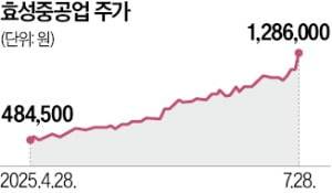 전력기기 슈퍼사이클이 실적으로 확인되면서 주가가 급등했다는 설명이다. 효성중공업은 지난 2분기 매출 1조5253억원, 영업이익 1642억원으로 각각 전년 동기 대비 27.8%, 161.9% 증가했다고 이날 밝혔다. 이동헌 신한투자증권 연구원은 “미국 관세 불확실성에도 역대 최대 수주 실적으로 전력기기 시장이 공급자 우위 시장임을 입증했다”고 말했다.