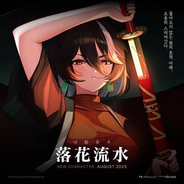 스튜디오 비쿤디는 공식 SNS로 "돌아오지 않는 봄의 흔적 아래 조용히 스러져 간다"며 낙화유수라는 타이틀과 함께 2025년 8월 신규 캐릭터 공개를 암시했다.
