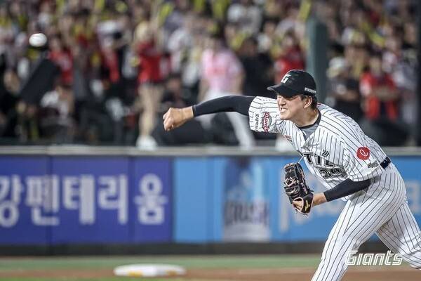 볼카운트 2-0으로 불리하게 출발한 김원중은 3구째 145km/h 직구로 첫 번째 스트라이크를 잡으며 숨을 돌렸다. 이어 4구째 147km/h 직구는 오선우의 파울 타구로 연결되며 볼카운트는 2-2가 됐다.