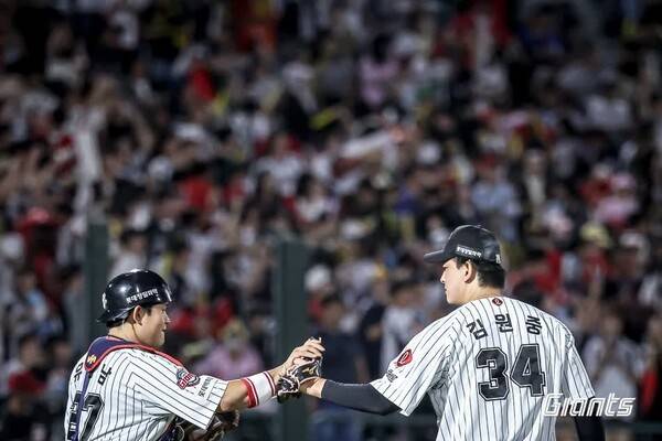 파울 4개를 포함해 7구까지 가는 승부 끝에, 김원중은 결정구로 136km/h 포크볼을 선택했다. 낮게 떨어지는 공에 변우혁의 방망이가 헛돌았다. 경기는 그대로 종료됐다.