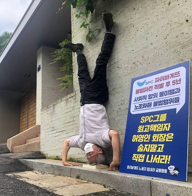 백발 변호사의 SPC회장 집 앞 물구나무 1인 시위, 왜? https://omn.kr/20fft