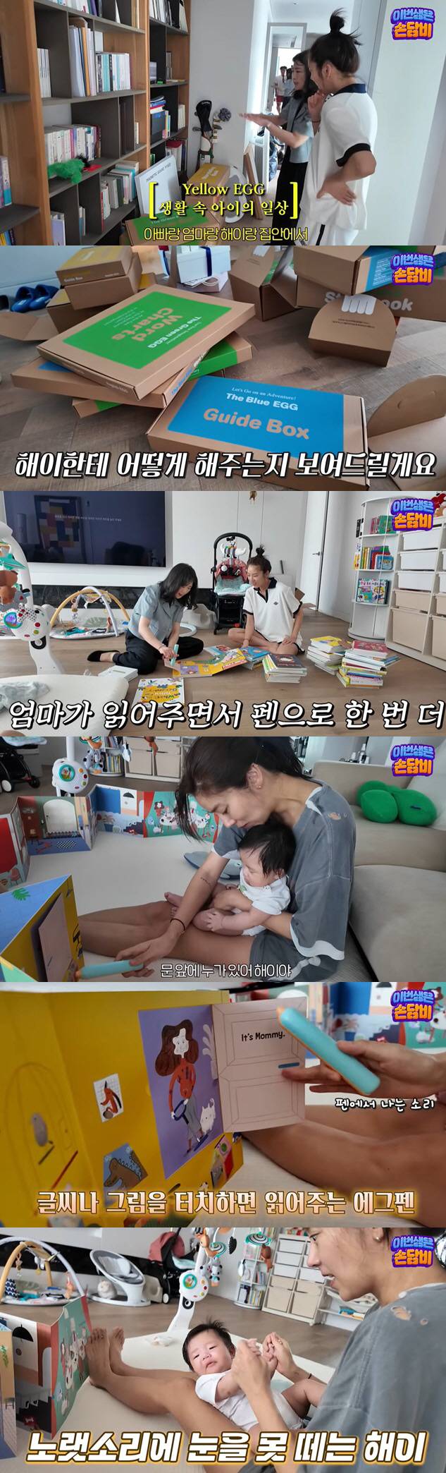 영상에서 손담비는 "제가 해이를 위해서 사주고 싶어했던 영어 책이 왔다. 최고의 영어 교육 전문가들이 기획한 프리미엄 영어교육 프로그램이다"면서 유아 영어 전집 언박싱에 나섰다.