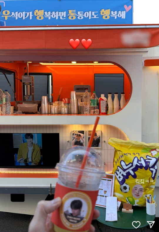 가수 겸 배우 아이유와 배우 변우석이 커피차로 훈훈한 응원 릴레이를 이어가며 드라마 촬영 현장을 따뜻하게 물들였다.