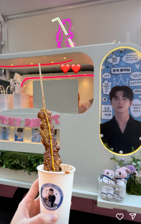 이에 화답하듯, 아이유 또한 변우석 팬덤 ‘통통이’에게 받은 도시락 인증샷을 공개했다. 그녀는 “우행통행 잘 먹었습니다!!”라는 메시지와 함께, 드라마 속 캐릭터를 그린 컵과 간식 세트를 찍어 공유했다. 이처럼 서로의 팬덤이 배우를 응원하는 ‘왕복 서포트’는 온라인상에서 큰 화제를 모았다.