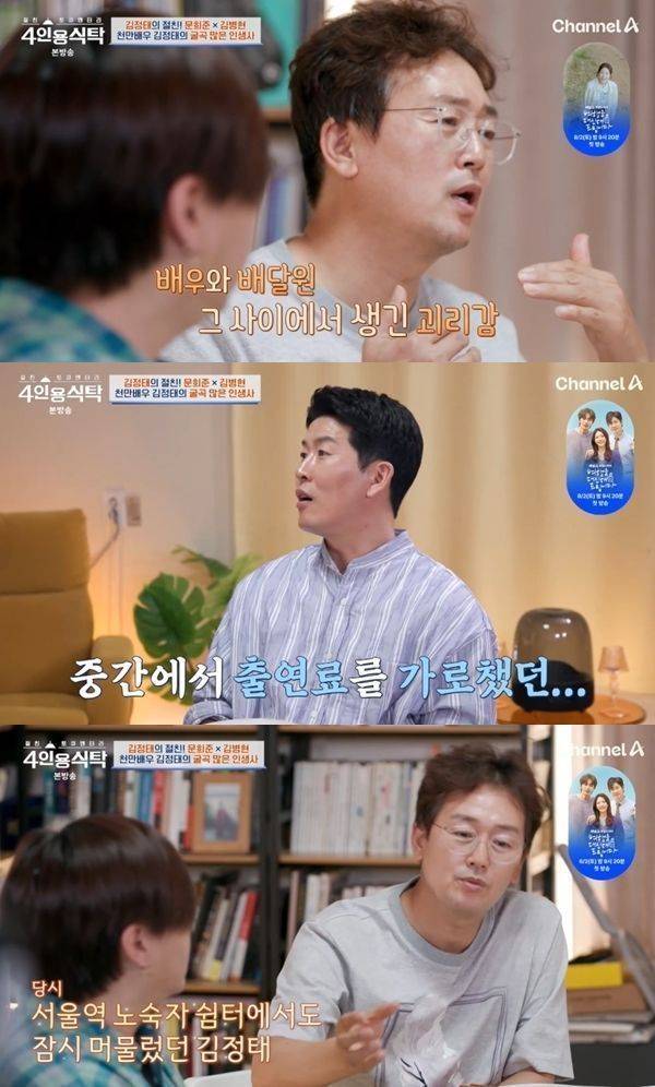 "유명세와 금전적 수입이 정비례하진 않는다"라고 말한 김정태는 연기만 아니라 배달업을 하면서 생계를 이어갔다고 밝혔다.